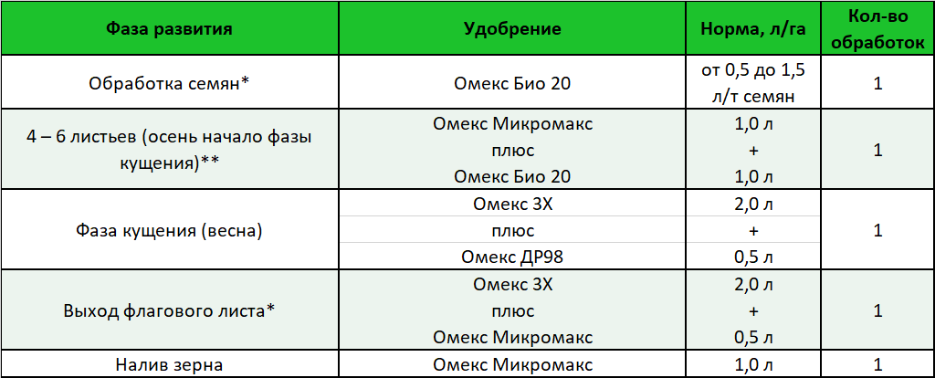 2. Осенняя обработка озимой пшеницы удобрениями Омекс Микромакс и Омекс Био 20 помогает растениям за счет полноценного обеспечения аминокислотами, органическими соединениями, макро и микроэлементами увеличить корневую систему и вегетативный аппарат, накопить сахара, тем самым обеспечивая благоприятные условия для перезимовки и предотвращение снижения густоты стояния растений на гектаре весной.